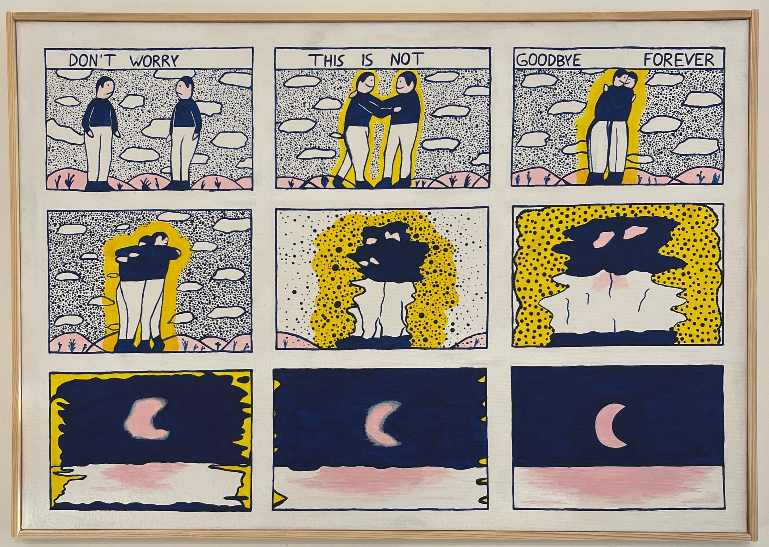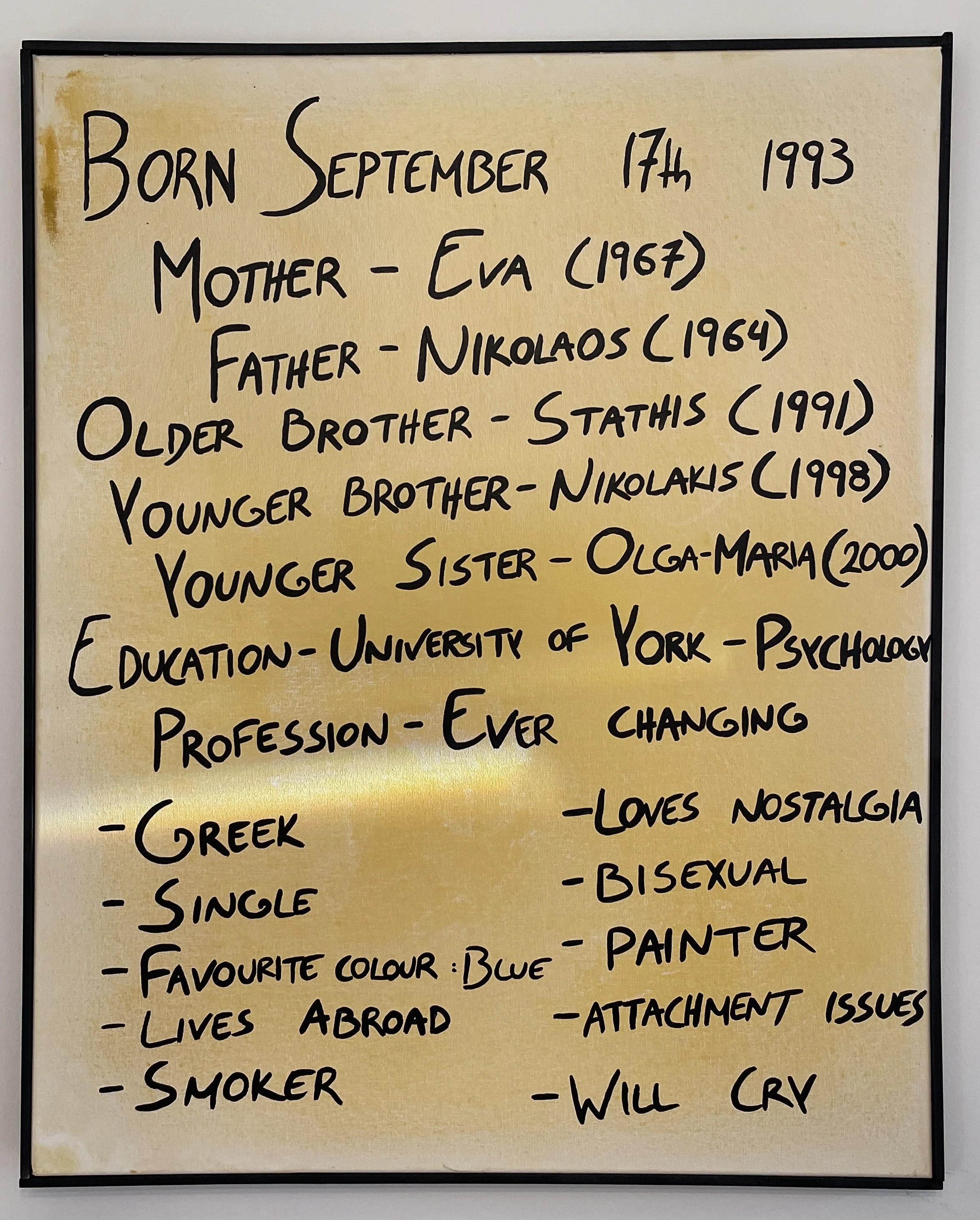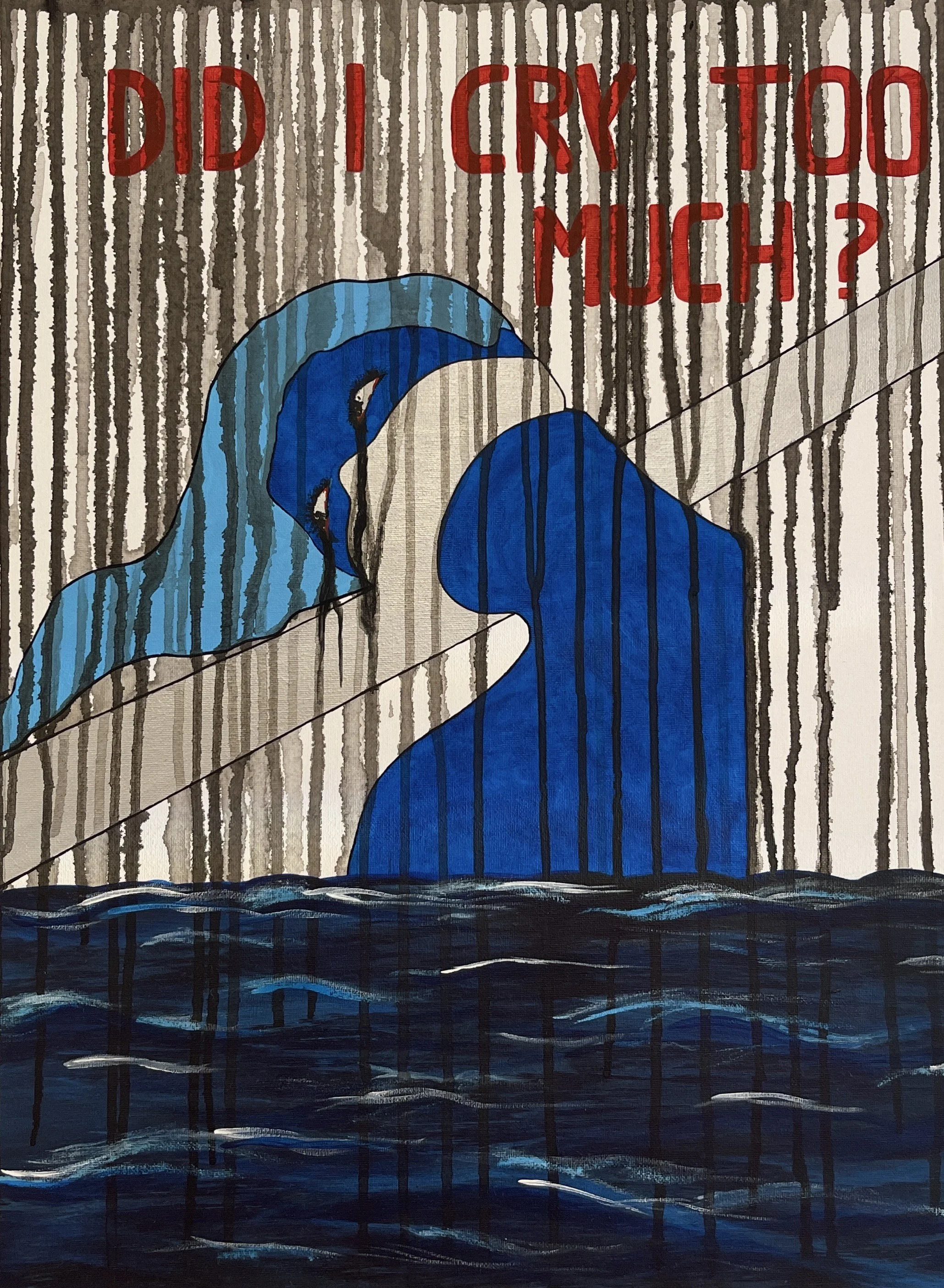 Eleni’s art uses figures, symbols, text, and tones to capture the intensity of navigating self-identity, nostalgia, and pain - a painful process that can lead you to a beautiful stage of metamorphosis.